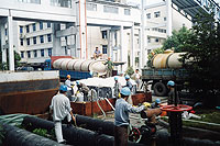 常州市裕民科技有限公司根據長(cháng)期積累的電廠(chǎng)灰管清洗施工經(jīng)驗,組織廣大工程技術(shù)人員進(jìn)行科技攻關(guān),終于尋找出了一種不停車(chē)清洗灰管的辦法,既解決了除垢不徹底,耗酸大、有灰垢塌方堵塞管道等問(wèn)題,又不影響電廠(chǎng)正常的輸灰,并且保證了清洗質(zhì)量。所謂灰管不停車(chē)情況就是在排灰管正常運行狀態(tài)下,在清洗槽罐內連續配制一定濃度的鹽酸、一定量的緩蝕劑、清洗助劑,把以上藥劑打入排灰管中進(jìn)行開(kāi)路清洗,清洗助劑能使酸洗反應過(guò)程中大量生成的二氧化碳氣體迅速溶于清洗液中,從而減少由于氣阻產(chǎn)生的“鯽魚(yú)背”現象,防止頂部灰垢坍塌堵塞管道,從而保證了清洗質(zhì)量。在清洗過(guò)程中,須選擇灰管加藥口及灰管末端幾個(gè)點(diǎn)為取樣口,定期檢測PH值,以確認清洗終點(diǎn)。